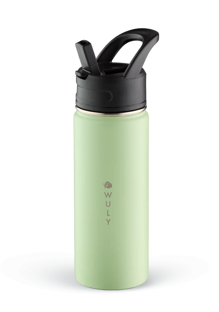 With 5 different interchangeable lids, this Wuly bottle can handle any situation. The flip lids are great for jogging, one move of your finger is all you need to drink. When driving keep your eyes on the road with the flip straw. Stow it in a bag with the screw top and be sure it won’t open unexpectedly. It has a very practical size that you can even use on your bike. With the removable strap it’s even easier to carry in hand or attach to your bag.