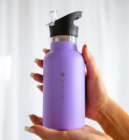 Bulky bottles are out, and your slim, chic Wuly bottle effortlessly slips into your handbag, backpack, or even your car’s cupholder. Its compact size and elegant shape make it incredibly easy to handle and take everywhere. The standard flip straw lid ensures smooth sipping on the move, while optional lids, like the elegant bamboo top or the sporty cap, add customizable convenience. Stay effortlessly hydrated while keeping your look flawlessly polished.